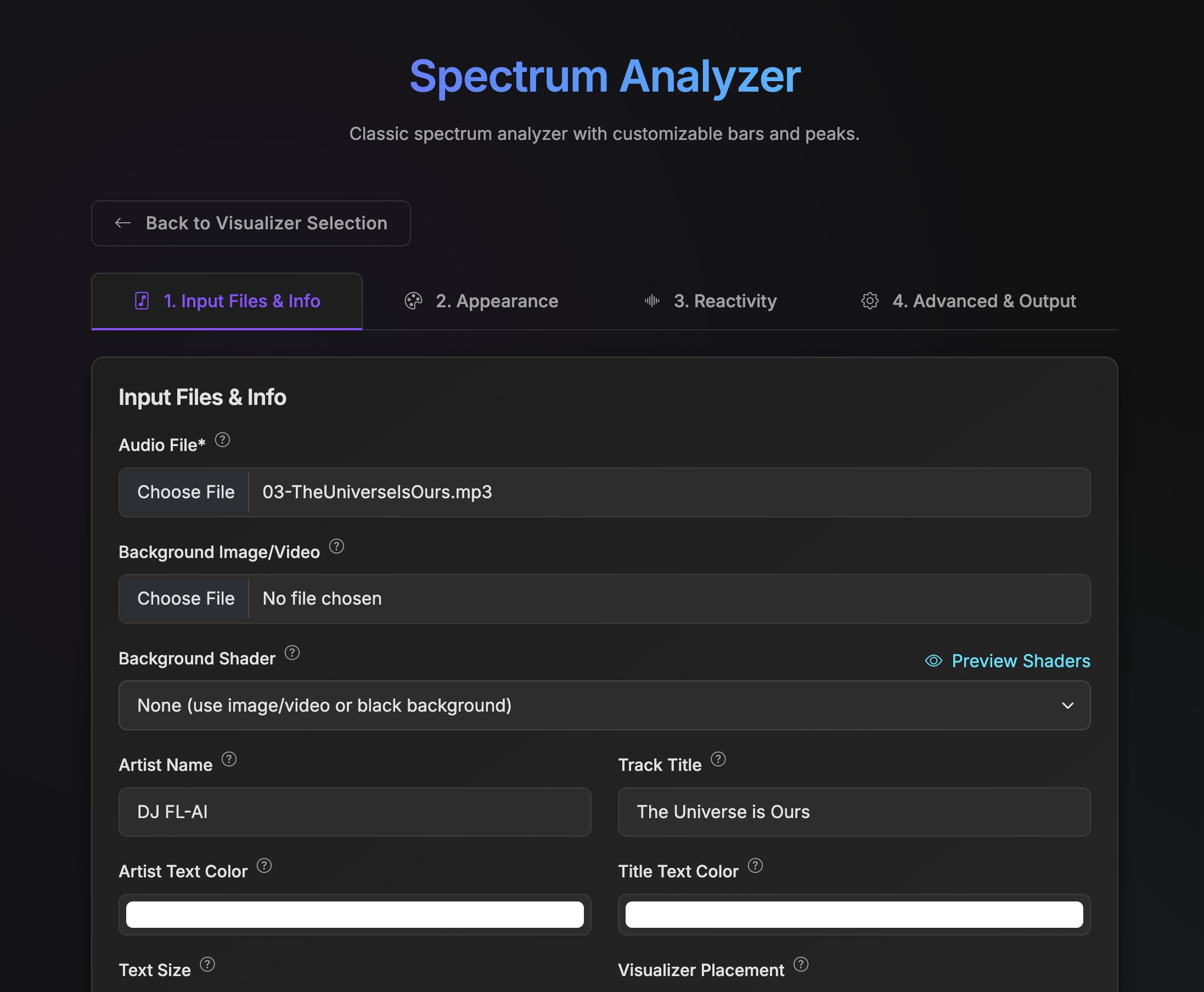 Choose from a wide variety of spectrum analyzers, waveform renderers, and intricate audio-reactive animations. Each visualization type is fully customizable, allowing you to tailor the look and feel to match your artistic vision or brand identity.