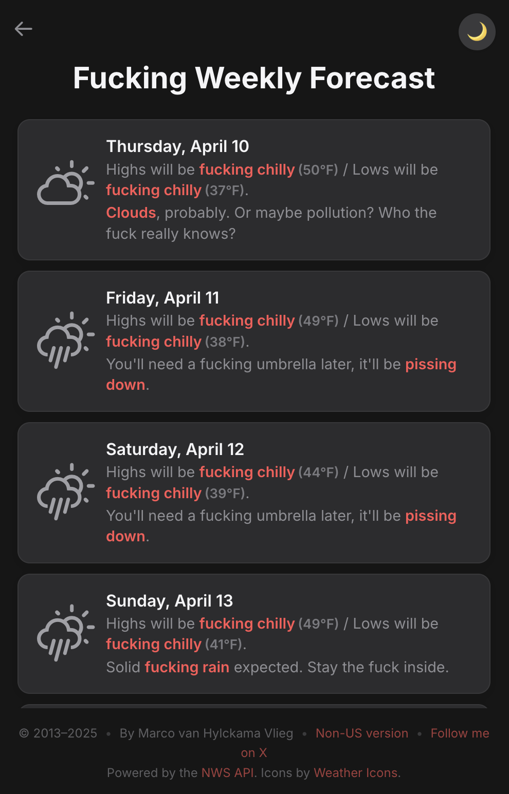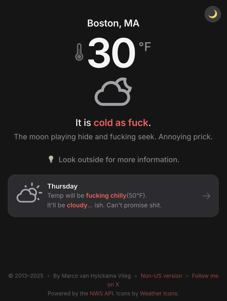 I designed this for people who want weather information, not weather entertainment. Sometimes the best app is the one that does one thing exceptionally well.